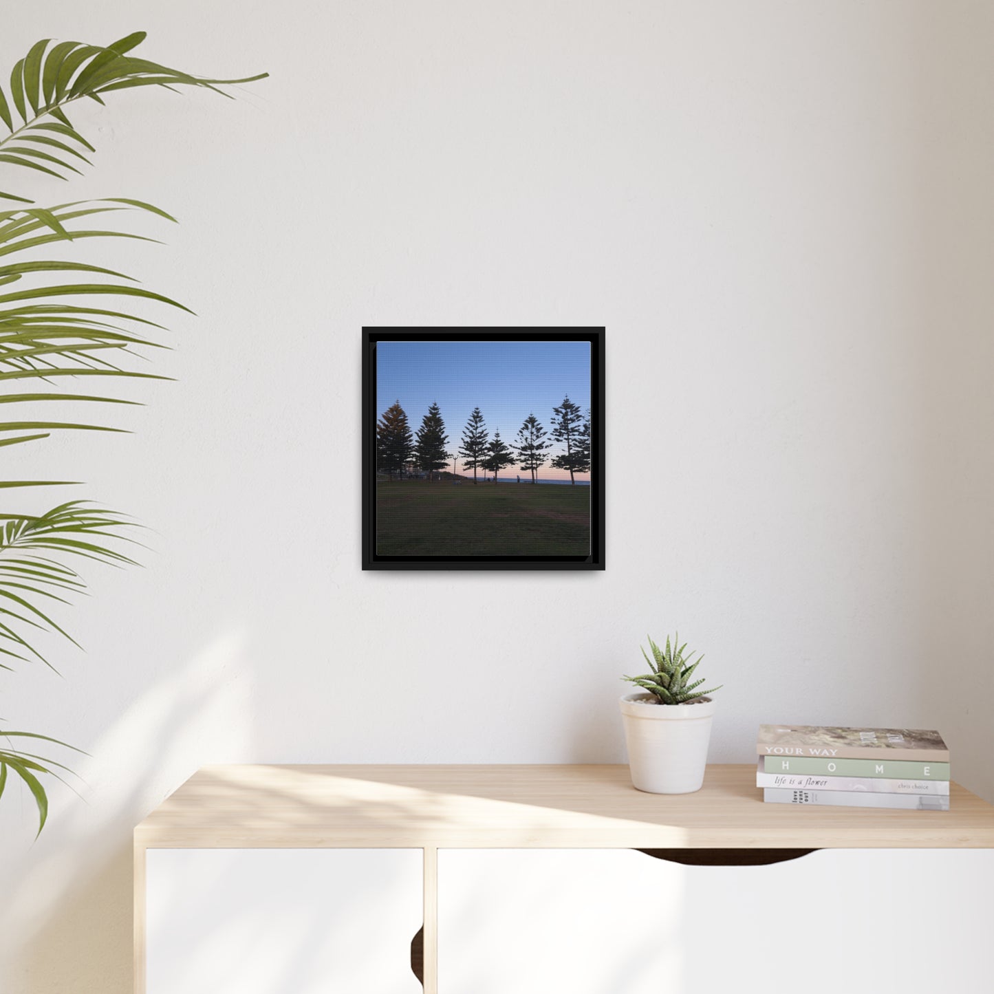 There are 6 framed canvas sizes to choose from to suit your wall and space. The available sizes are displayed in the drop-down menu of the product and below. Please check the size is right for you and your wall.